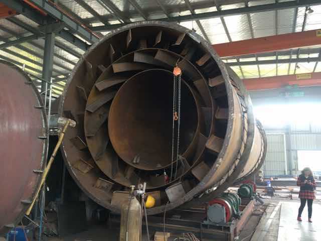 多种扬料板设计,角形扬料板与万字扬料板的有机结合,使物料与热烟气交换更加充分,减少了烘干机筒体内“风洞”产生的机理。